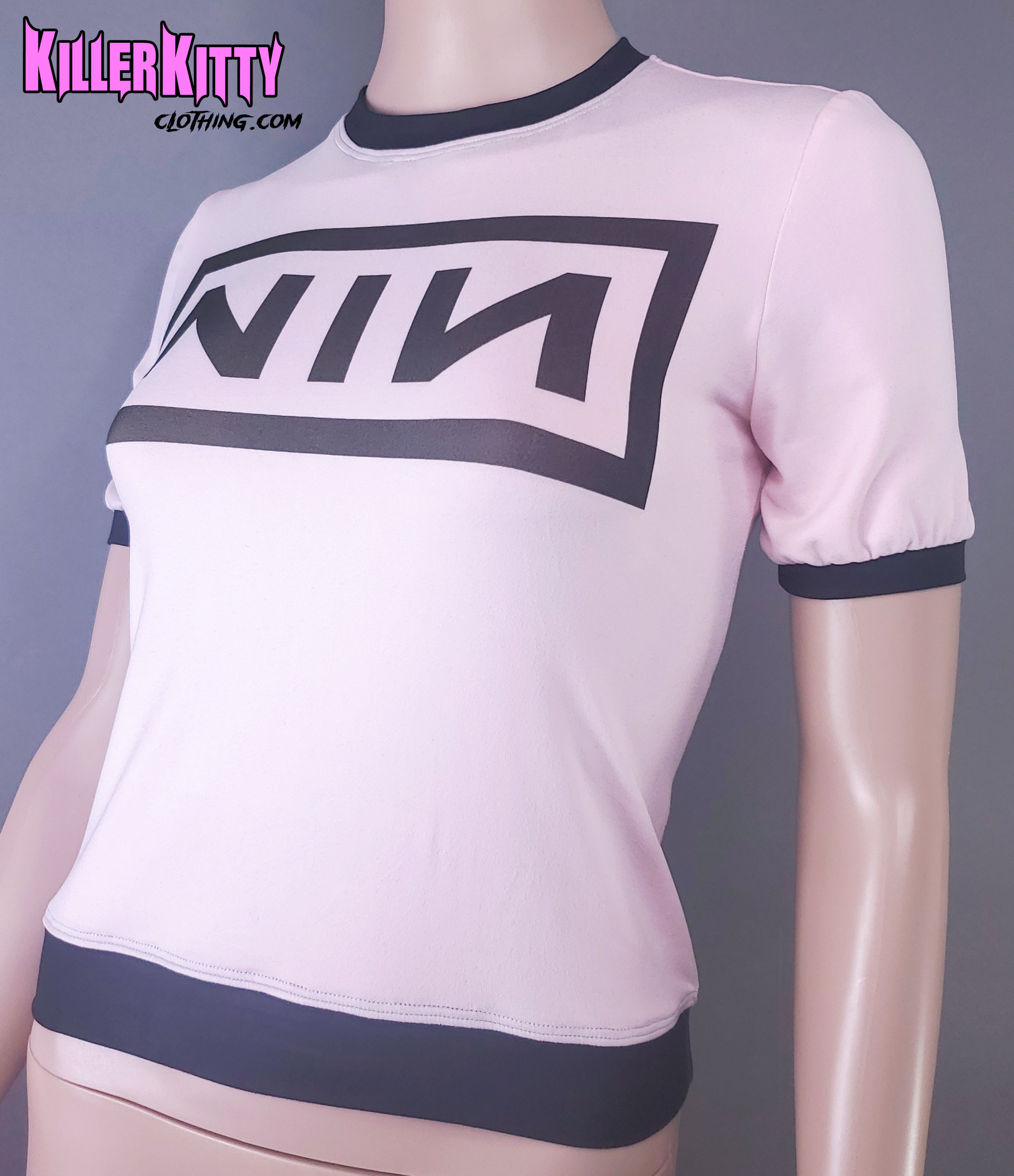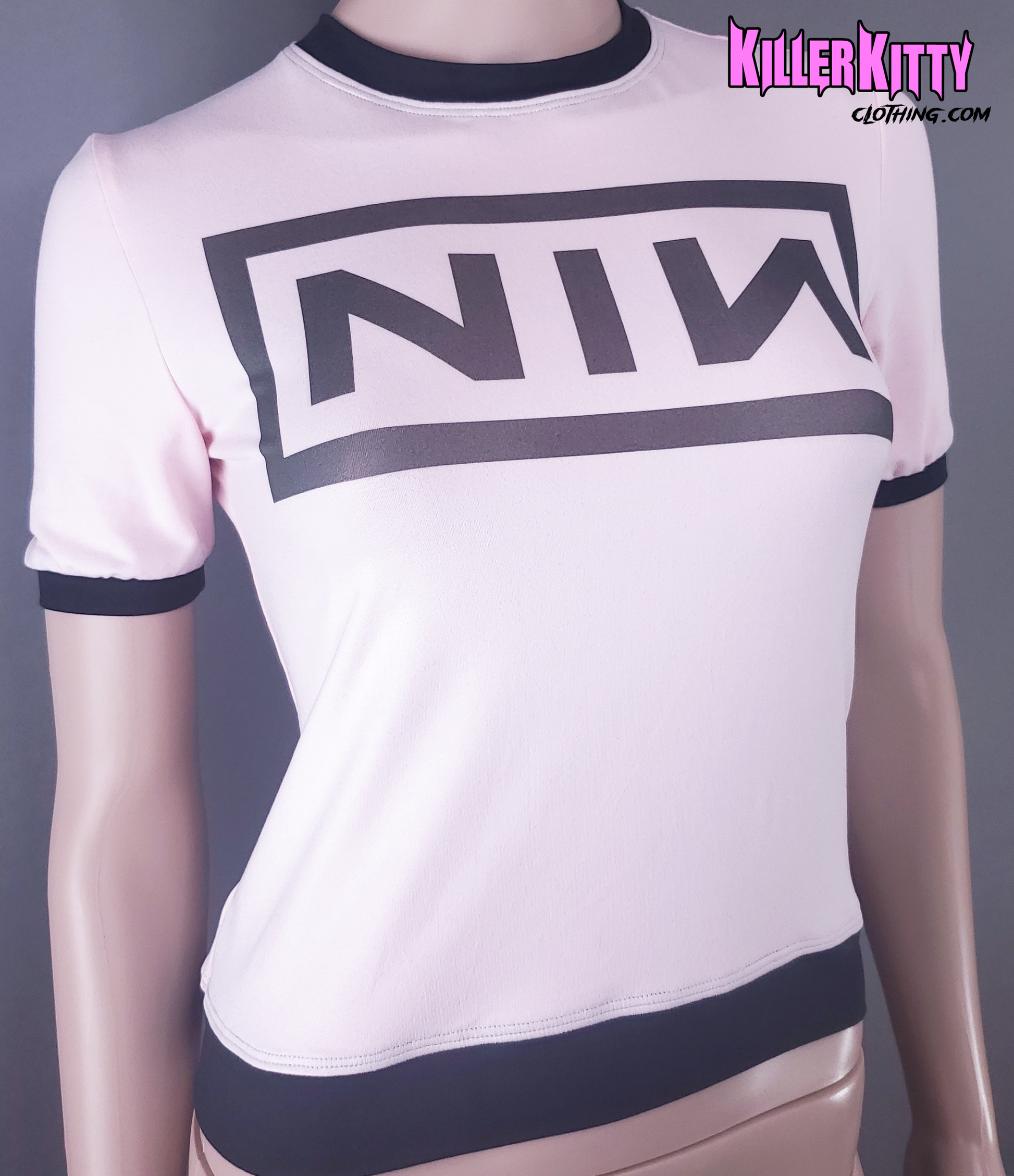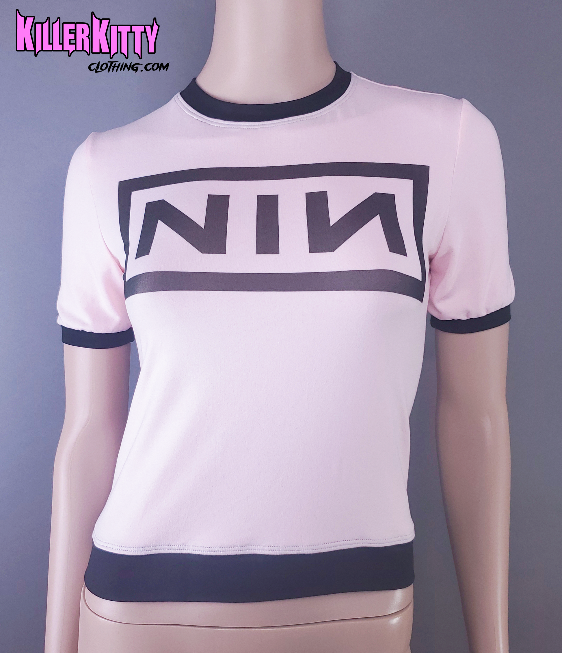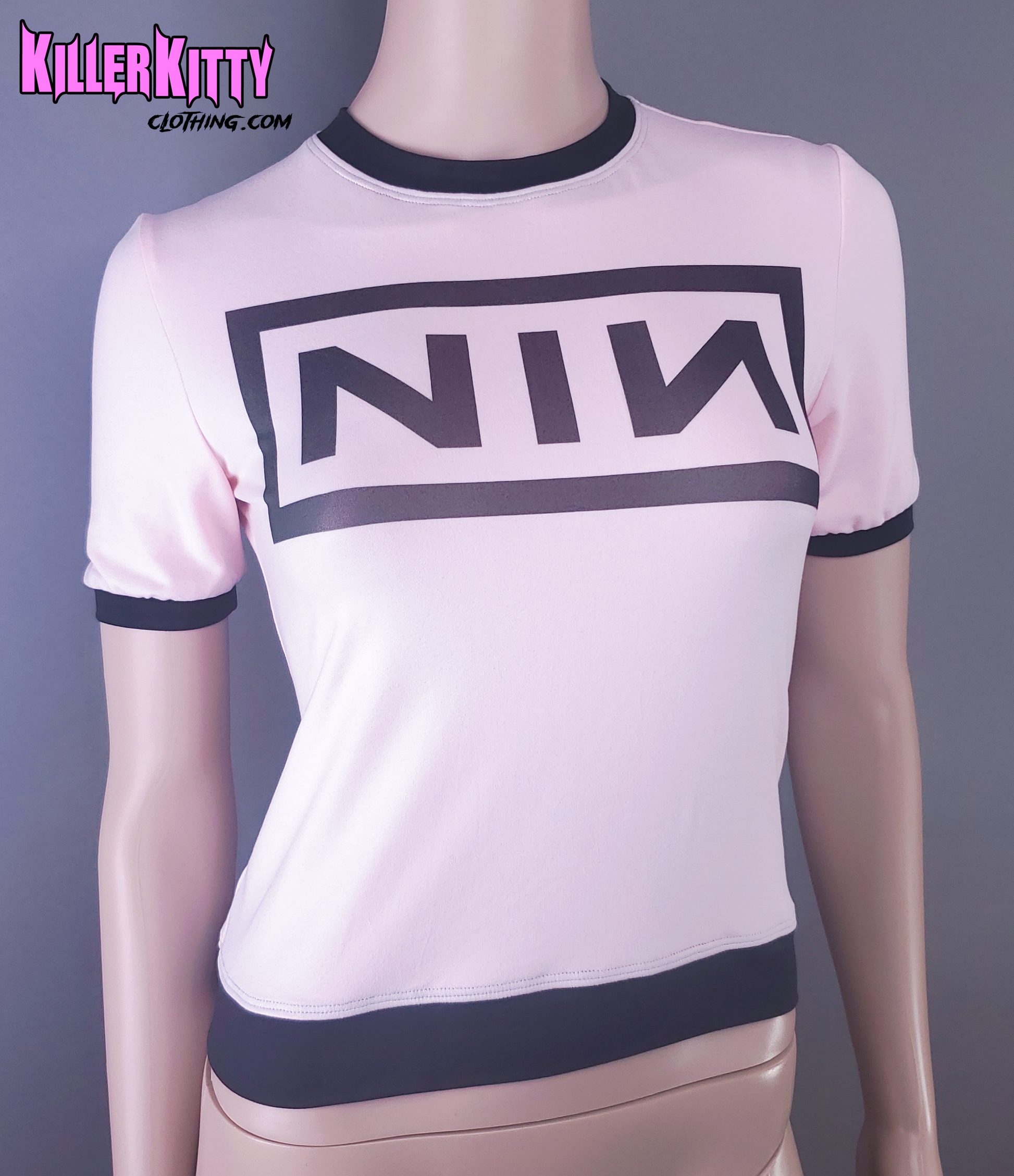 NIN Nine Inch Nails PINK ringer tee with black trim.