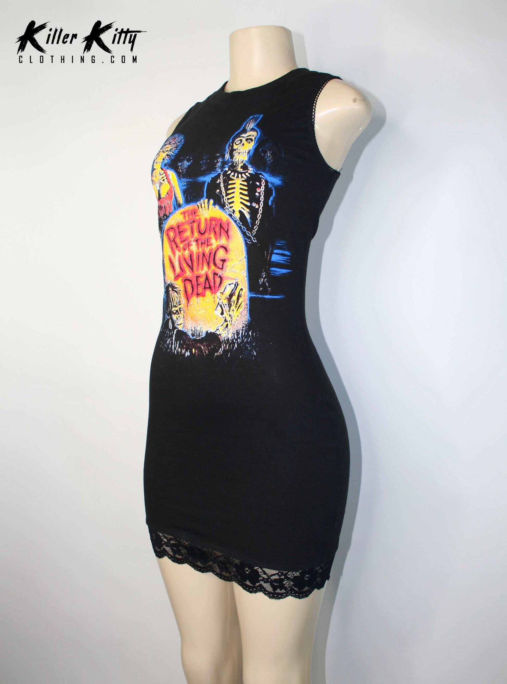 Altered from a t-shirt for a flattering fit with black elastic trim on the arms and black lace on the hem.