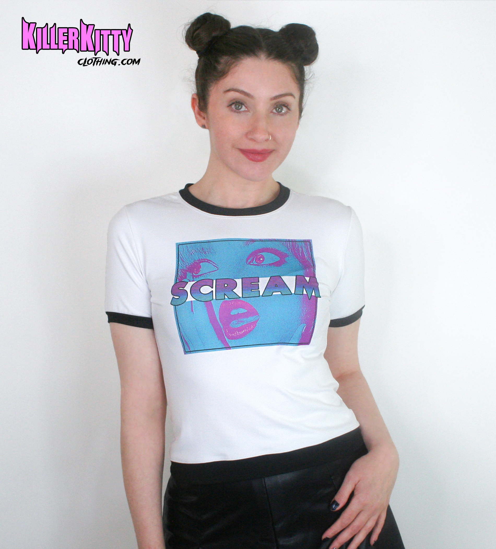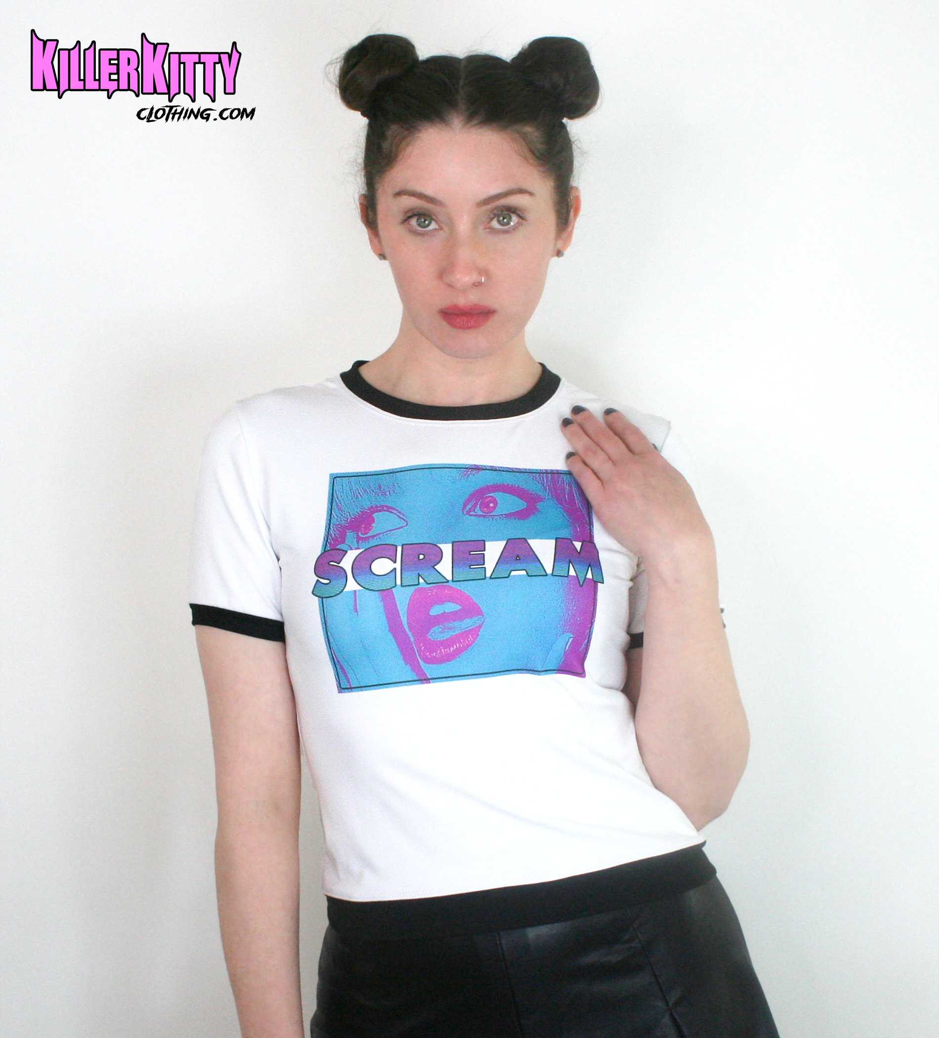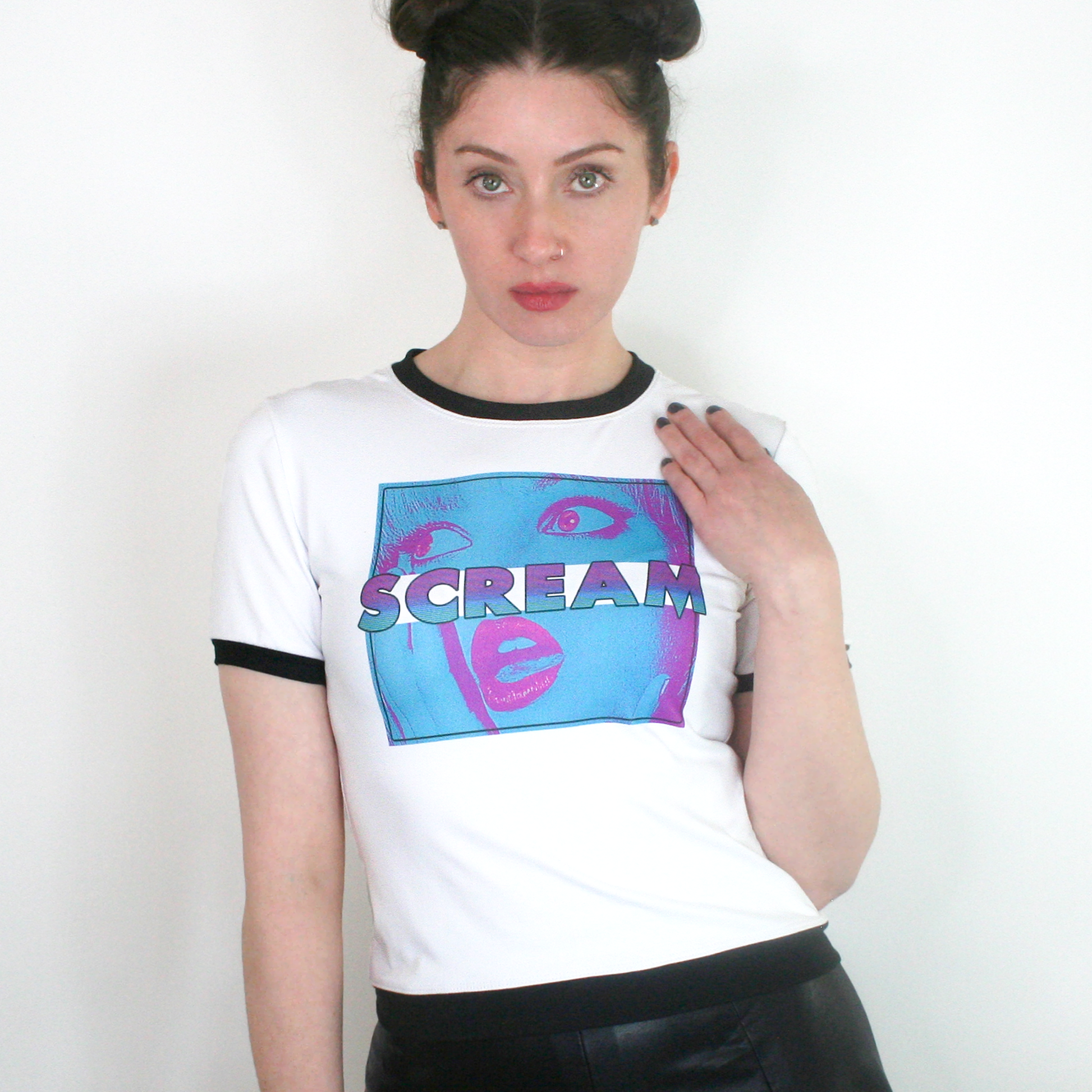 Scream horror ringer tee with black trim.